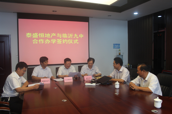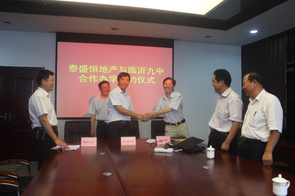 為促進蘭山區(qū)教育事業(yè)發(fā)展,同時也為感恩回報社會,7月31日,在蘭山區(qū)教體局的引薦之下,公司與臨沂九中圓滿舉行合作辦學(xué)簽約儀式,推動了蘭山教育事業(yè)發(fā)展進入新階段。出席本次簽約儀式的代表有蘭山區(qū)教體局李局長、臨沂九中伊校長、泰盛恒地產(chǎn)副總經(jīng)理鄭峰等領(lǐng)導(dǎo)。