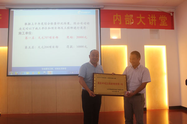 天元707項目部作為金泰華城S4項目的參建單位,在上半年工程檢查中綜合排名第一。獲得公司給予的20000元現(xiàn)金獎勵。同時公司金泰華城項目部也獲得20000元現(xiàn)金獎勵。獲獎單位表示將會再接再厲,在今后的檢查中取得更好成績。