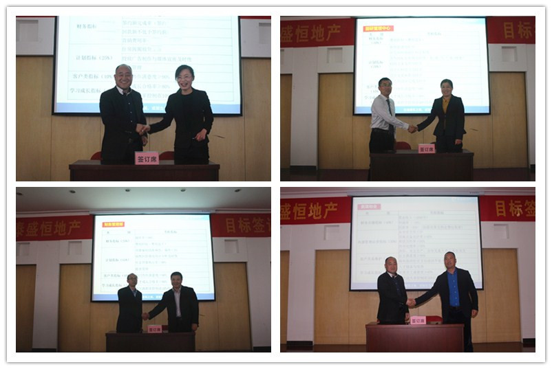 首先,由公司班子成員代表公司和各部門負責(zé)人簽訂年度目標(biāo)責(zé)任書,其次由地產(chǎn)公司副總經(jīng)理班磊代表地產(chǎn)公司與各分子公司簽訂年度目標(biāo)責(zé)任書,最后是各分子公司負責(zé)人與其各項目負責(zé)人簽訂年度目標(biāo)責(zé)任書,整個簽訂儀式在莊嚴而緊張的氣氛中進行。