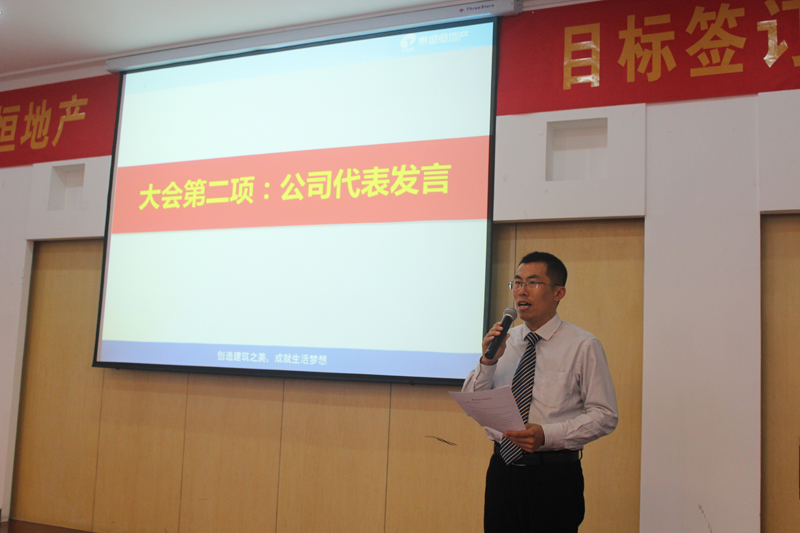 4月27日下午五點,泰盛恒地產(chǎn)組織全員在六樓大會議室舉行年度目標(biāo)責(zé)任書簽訂儀式,地產(chǎn)公司全員及分子公司部分人員共計240余人參加。