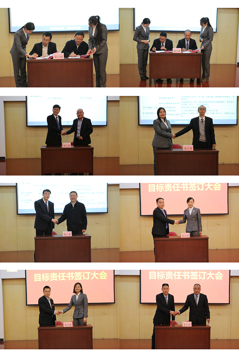 隨后,由公司領(lǐng)導班子成員代表公司和各部門負責人簽訂年度目標責任書,其次由黃總代表地產(chǎn)公司與各分子公司簽訂年度目標責任書,最后各分子公司負責人與其各項目負責人簽訂年度目標責任書,整個簽訂儀式在莊嚴而緊張的氣氛中進行。