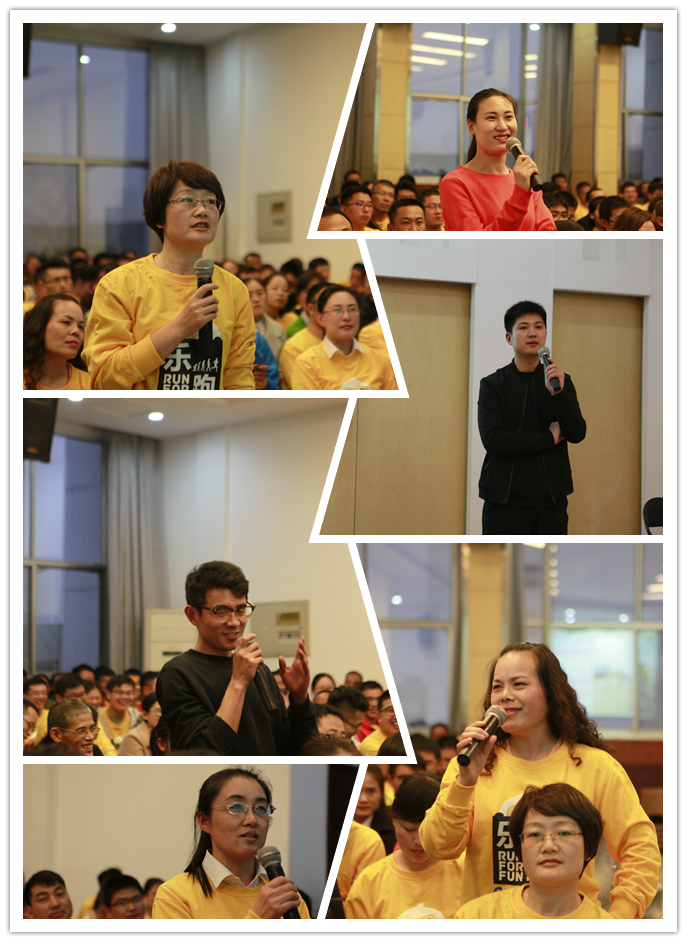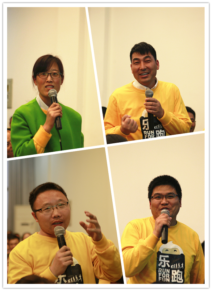 一首《最貴是健康》拉開(kāi)了本次大會(huì)的序幕。首先,趙主席先以“經(jīng)過(guò)這段時(shí)間的跑步,大家感覺(jué)自己有什么變化嗎?”為切入點(diǎn)進(jìn)行交流,隨后回顧了公司組織的首屆樂(lè)跑賽活動(dòng)精彩視頻,并讓舒格蘭案場(chǎng)的同事分享了10公里跑步的感想和感悟,由此引出“你是如何看待跑步的”、“你為什么而跑步”等問(wèn)題讓大家思考、討論。