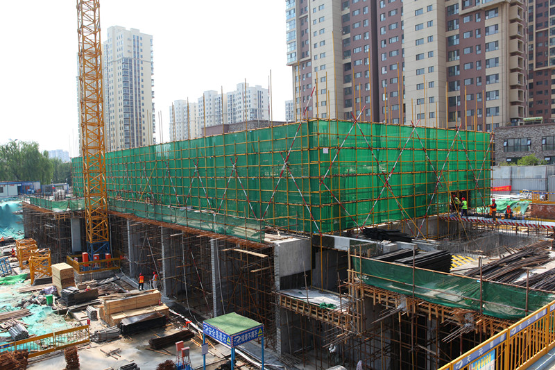因新冠病毒疫情影響,項目前期施工進(jìn)度受到一定阻滯。為了追趕工期,保障后續(xù)節(jié)點計劃的按時完成,復(fù)工后,施工方迅速調(diào)整施工計劃,馬力全開。由于金泰·舒格蘭24#樓負(fù)一層層高較高,涉及高大模板支撐問題,板總荷載、梁線荷載超出一定范圍,施工要求高、難度大;再加上場地條件受限,工程用料供應(yīng)勉力維持,給項目建設(shè)進(jìn)度帶來較大考驗。